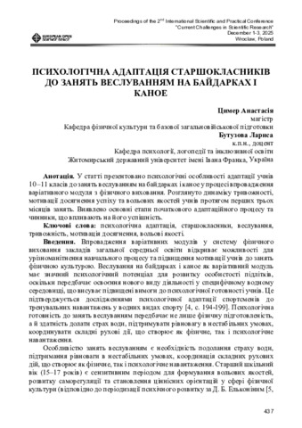 Психологічна адаптація старшокласників до занять веслуванням на байдарках і каное.