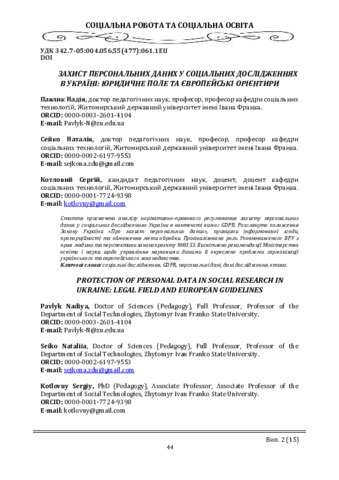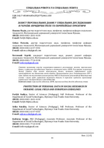 | Ключові слова: | соціальні дослідження, GDPR, персональні дані, дані дослідження, етика |