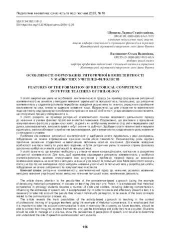 Особливості формування риторичної компетентності у майбутніх учителів-філологів.