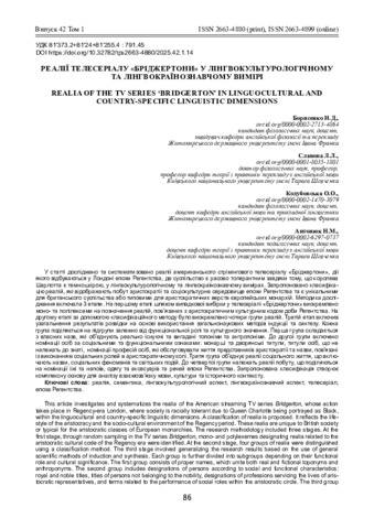 Реалії телесеріалу «Бріджертони» у лінгвокультурологічному та лінгвокраїнознавчому вимірі.