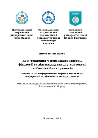 Збірник містить матеріали доповідей учасників 3-ї Всеукраїнської науково-практичної конференції студентів, здобувачів та молодих учених «Нові тенденції у перекладознавстві, філології та лінгводидактиці у контексті глобалізаційних процесів», яка відбулася 5 листопада 2025 року в Житомирському державному університеті імені Івана Франка в межах відзначення Міжнародного дня науки. Теми доповідей охоплюють лінгвістичну, перекладознавчу та лінгводидактичну галузі.