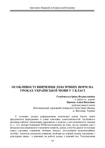 Особливості вивчення лексичних норм на уроках української мови у 3 класі.