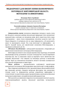 Вітушенко Н. С. (2025) Медіапроєкт для висвітлення економічного потенціалу Житомирської області: фотосерія та інфографіка. In: X Міжнародна наукова конференція «Проблеми та перспективи реалізації та впровадження міждисциплінарних наукових досягнень», 5 грудня 2025 р., Чернігів. С. 34–35. DOI: 10.62731/mcnd-05.12.2025.