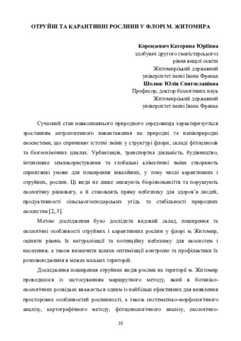 Отруйні та карантинні рослини у флорі м. Житомира.
