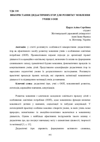 Царук А. С. (2025) Використання дидактичних ігор для розвитку мовлення учнів з ООП. In: IV Міжнародна науково-практична конференція «Science, technology and global challenges», 4–6 грудня 2025 р., Токіо, Японія. С. 492–495.