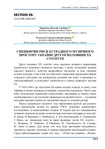 Специфічні риси естрадного музичного простору України другої половини ХХ століття.