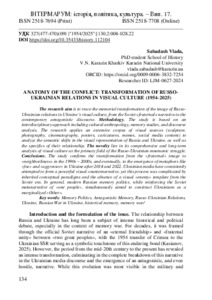 The purpose of the study is to trace the memorial transformation of the image of Ukrainian-Russian relations in the visual culture of Ukraine: from the Soviet "fraternal" narrative to the modern antagonistic discourse. Methodology. The study is based on an interdisciplinary approach, which includes cultural anthropology, memory studies and discourse analysis. The work uses a wide corpus of visual sources (sculpture, photography, cinema, posters, caricatures, memes, social media content) to analyze semantic shifts in the visual representation of Russia and Ukraine, as well as the specifics of their relations. The novelty lies in the comprehensive and long-term analysis of visual culture as the main field of the Ukrainian-Russian mnemonic struggle. Conclusions. The study confirms the transformation from the “fraternal” image to the “neighborhood” one in the 1990s–2000s and, ultimately, to the emergence of the “enemy” and “aggressor” metaphors in Ukraine after 2014 and 2022. Ukrainian media consistently attempted to form a powerful visual counternarrative, but this process was complicated by inherited conceptual paradigms and the absence of a visual template of the “enemy” from the Soviet era. In general, contemporary Russian memory politics, while reinforcing the Soviet metanarrative of “one people,” simultaneously aimed to construct Ukrainians as a marginalized “Other.”