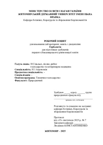 Робочий зошит для виконання лабораторних занять з дисципліни «Гербологія».