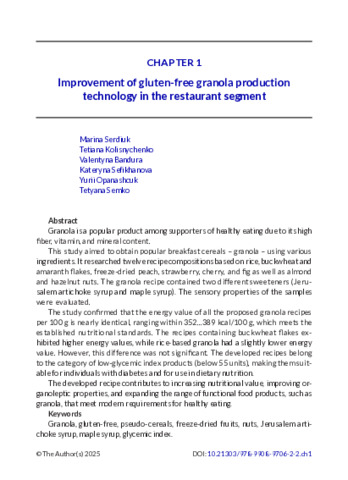 Chapter 1. Improvement of gluten-free granola production technology in the restaurant segment.
