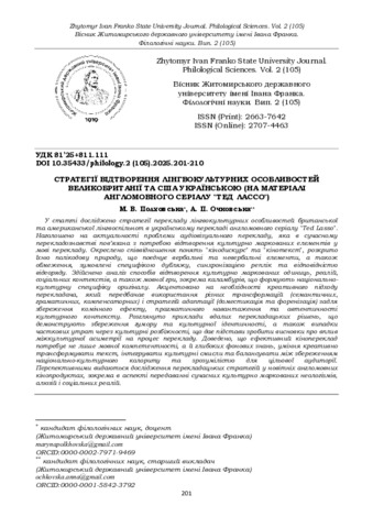 Стратегії відтворення лінгвокультурних особливостей Великобританії та США українською (на матеріалі англомовного серіалу «Тед Лассо»).