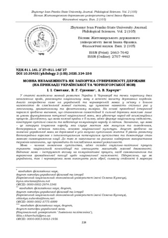 | ДСТУ 8302:2015: | Сметана І. І., Сухенко В. Г., Харчук Л. В. Мовна незалежність як запорука суверенності держави (на прикладі української та чорногорської мов). Вісник Житомирського державного університету імені Івана Франка. Філологічні науки. 2025. № 105. С. 224–236. DOI: 10.35433/philology.2(105).2025.224-236. |