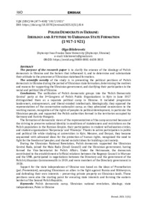 Метою статті є з’ясування сутності ідеології польських демократів в Україні та факторів, що на неї впливали, визначення й обґрунтування їх ставлення до процесів творення української державності.