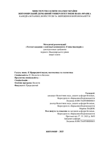 Методичні рекомендації «Тестові завдання з освітньої компоненти „Генна інженерія“».