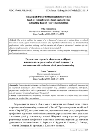 Педагогічна стратегія підготовки майбутніх вихователів до реалізації освітньої діяльності з навчання англійської мови дітей дошкільного віку.