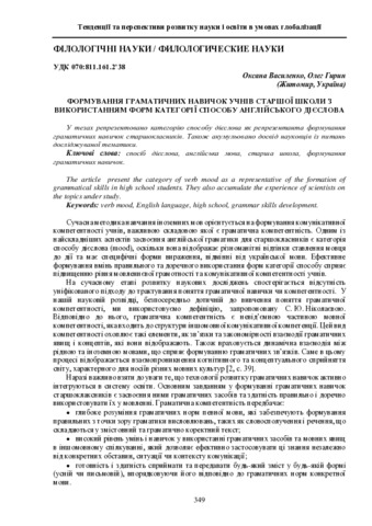 Формування граматичних навичок учнів старшої школи з використанням форм категорії способу англійського дієслова.