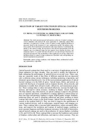 | ДСТУ 8302:2015: | Selection of target function in optical coatings synthesis problems / О. В. Міца та ін. Системні дослідження та інформаційні технології. 2025. № 5. С. 48–51. DOI: 10.20535/SRIT.2308-8893.2025.3.04. |