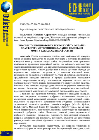 Використання цифрових технологій та онлайн-платформ у методиці викладання німецької мови у закладах вищої освіти.