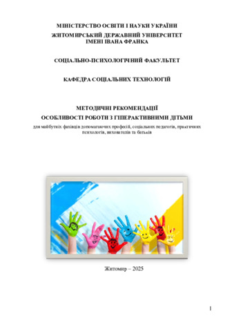 Особливості роботи з гіперактивними дітьми. Методичні рекомендації для майбутніх фахівців допомагаючих професій, соціальних педагогів, практичних психологів, вихователів та батьків.