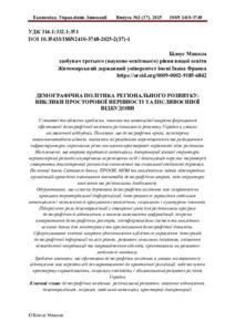 Демографічна політика регіонального розвитку: виклики просторової нерівності та післявоєнної відбудови.