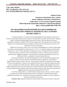 Організаційно-економічний механізм прийняття управлінських рішень на підприємствах харчової промисловості.