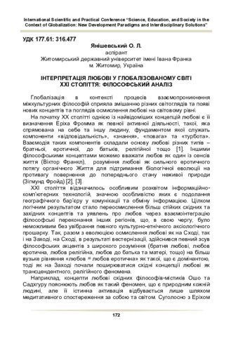 Інтерпретація любові у глобалізованому світі XXI століття: філософський аналіз.