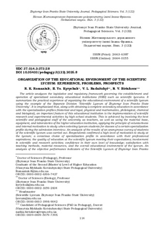 Організація освітнього середовища наукового ліцею: досвід, проблеми, перспективи.