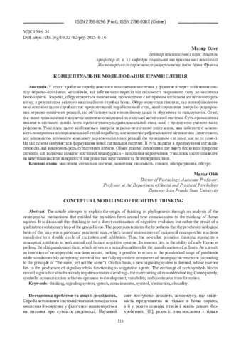 | ДСТУ 8302:2015: | Мазяр О. В. Концептуальне моделювання прамислення. Журнал соціальної та практичної психології. 2025. № 6. С. 113–118. DOI: 10.32782/psy-2025-6-16. |