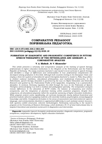 Формування діагностично-прогностичної компетентності у майбутніх логопедів Нідерландів та Німеччини: компаративістичний аналіз.
