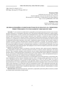 Вплив корекційно-розвиткової роботи психолога на зниження рівня тривожності в молодшому шкільному віці.