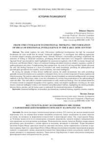 Бігунов Д. О.ORCID: https://orcid.org/0000-0001-6100-7765 (2025) From structuralism to emotional thinking: the formation of ideas of emotional intelligence in the early 20th century. Журнал соціальної та практичної психології. № 6. С. 81–85. ISSN 2786-9296. DOI: 10.32782/psy-2025-6-11.