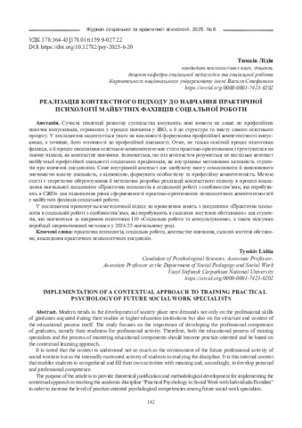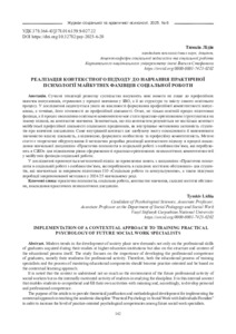 Реалізація контекстного підходу до навчання практичної психології майбутніх фахівців соціальної роботи.