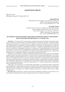 Волонтерство як прояв соціально-психологічного механізму консолідації українського суспільства.