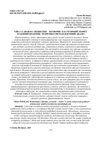 Поліщук О. П.ORCID: https://orcid.org/0000-0002-1095-8031 (2025) Уява та дилема «піднесене – потворне» в естетичній теорії і художній практиці: теоретико-методологічний аналіз. Українська полоністика. Т. 24, № 2. С. 104–111. ISSN 2220-4555. DOI: 10.35433/2220-4555.24.2025.phyl-5.