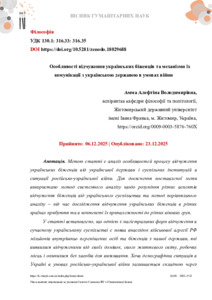 У статті встановлено, що однією з магістральних форм відчуження в сучасному українському суспільстві є поява внаслідок військової агресії РФ мільйонів внутрішньо переміщених осіб та біженців з нашої держави, які виявилися відчуженими від своїх домівок, свого життєвого світу, робочих місць і опинилися без засобів для виживання. Хоча демографічна ситуація в Україні в умовах російсько-української війни залишається складною через велику кількість біженців з країни, високу смертність і низьку народжуваність, дані на кінець 2024 р. спростовують поширювані російськими пропагандистами наративи про прагнення значної частини українців залишити Україну. З’ясовано, що незважаючи на ці випробування, більшість українців прагнуть розбудовувати саме українську державу.