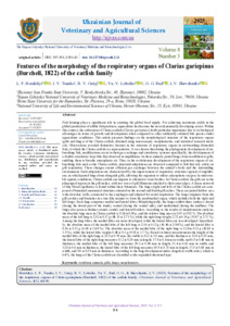 Features of the morphology of the respiratory organs of Clarias gariepi-nus (Burchell, 1822) of the catfish family.