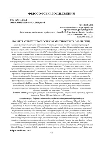 Білик Я. М.ORCID: https://orcid.org/0000-0002-9611-3733 (2025) Поняття культуротворчості в українознавстві та полоністиці. Українська полоністика. Т. 24, № 2. С. 62–67. ISSN 2220-4555. DOI: 10.35433/2220-4555.24.2025.phyl-1.