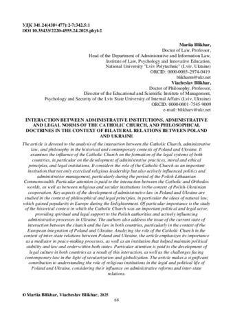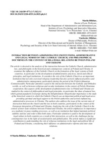 Interaction between Administrative Institutions, Administrative and Legal Norms of the Catholic Church, and Philosophical Doctrines in the Context of Bilateral Relations between Poland and Ukraine.