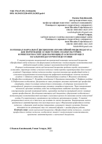 Потенціал навчальної дисципліни «Професійний імідж педагога» для формування особистісних і полікультурних компетентностей здобувачів вищої освіти в процесі загальнопедагогічної підготовки.