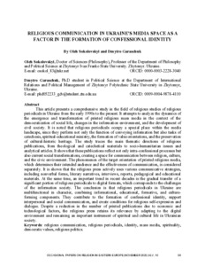 Religious Communication in Ukraine’s Media Space as Factor in the Formation of Confessional Identity