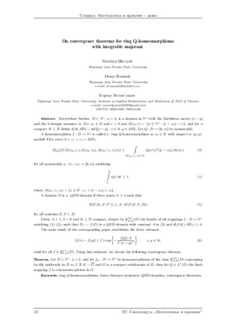 Ilkevych N. S.ORCID: https://orcid.org/0000-0003-0999-2299, Romash D. V., Sevost’yanov Е. А.ORCID: https://orcid.org/0000-0001-7892-6186 (2025) On convergence theorems for ring Q-homeomorphisms with integrable majorant. In: XV Symposium “Mathematics and its applications”, December, 12–13, 2025, Belgrade, Serbia. ст. 42.