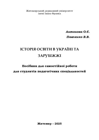 Історія освіти в Україні та зарубіжжі: Посібник для самостійної роботи.