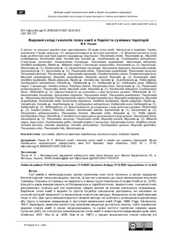 Видовий склад і екологія голих амеб в Україні та суміжних територій.