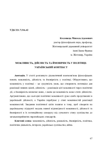Можливість, дійсність та ймовірність у політиці: український контекст