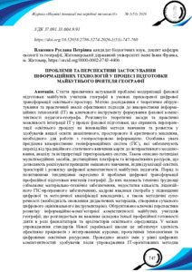 Проблеми та перспективи застосування інформаційних технологій у процесі підготовки майбутнього вчителя географії.