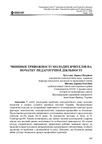 In: 5 Міжнародна науково-практична конференція «Scientific Innovation: Theoretical Insights and Practical Impacts», 19–21 січня 2026 р., Неаполь, Італія.