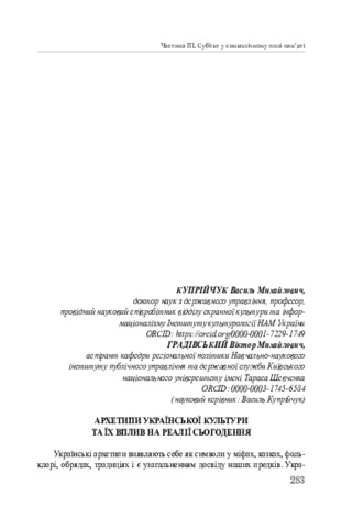 Архетипи української культури та їх вплив на реалії сьогодення.
