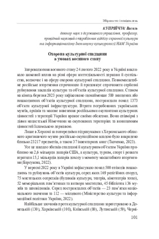 Охорона культурної спадщини в умовах воєнного стану.