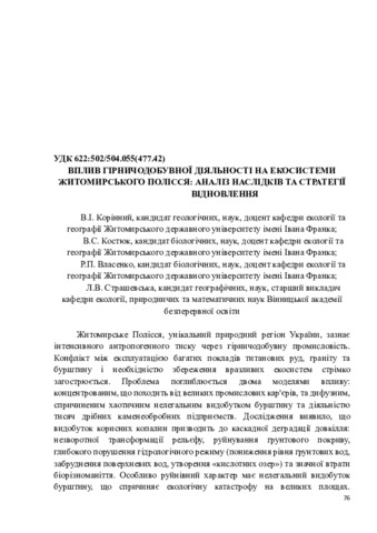 Вплив гірничодобувної діяльності на екосистеми Житомирського Полісся: аналіз наслідків та стратегії відновлення.