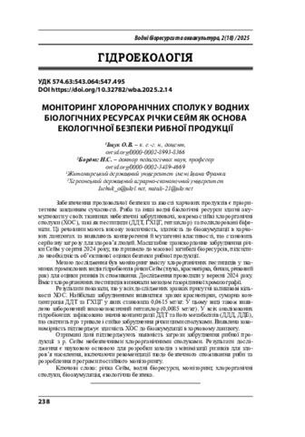 Моніторинг хлорорганічних сполук у водних біологічних ресурсах річки Сейм як основа екологічної безпеки рибної продукції.