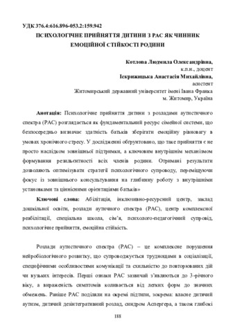 Психологічне прийняття дитини з РАС як чинник емоційної стійкості родини.